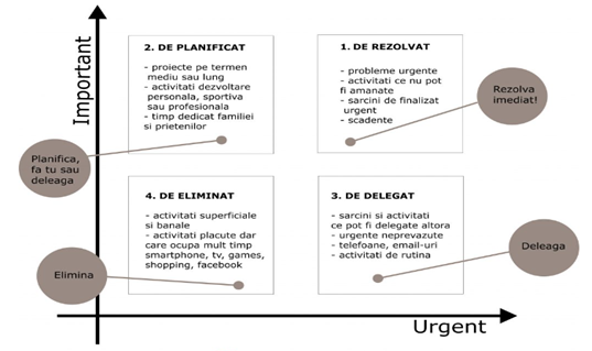 - Clasificați sarcinile în funcție de importanță și urgență pentru a prioritiza în mod corespunzător timpul și eforturile.